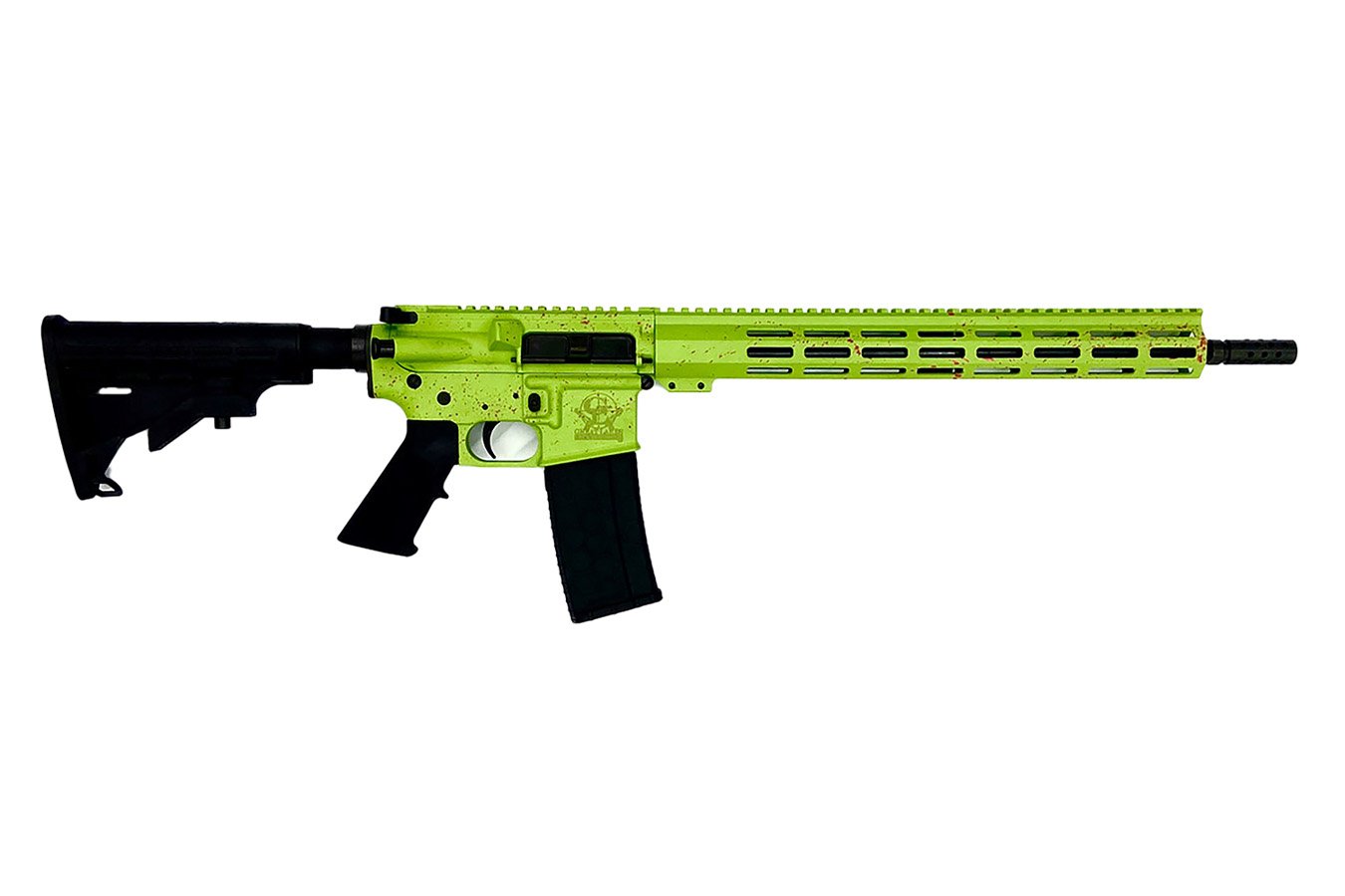 The Great Lakes Firearms Splatter Series AR-15 is a 16″ semi-automatic tactical rifle built on a gas-operated AR platform. Featuring a 16″ chrome moly vanadium barrel with black nitride finish, threaded muzzle, and 1:8″ twist rate, this rifle is optimized for reliability and performance. The aluminum receiver with Picatinny rail, M-LOK handguard, and Mil-Spec grips provide modularity and control, while the Zombie Splatter Cerakote finish adds a distinct aesthetic. Designed for tactical and sporting applications, it comes with a 30+1 capacity and a lightweight polymer stock.